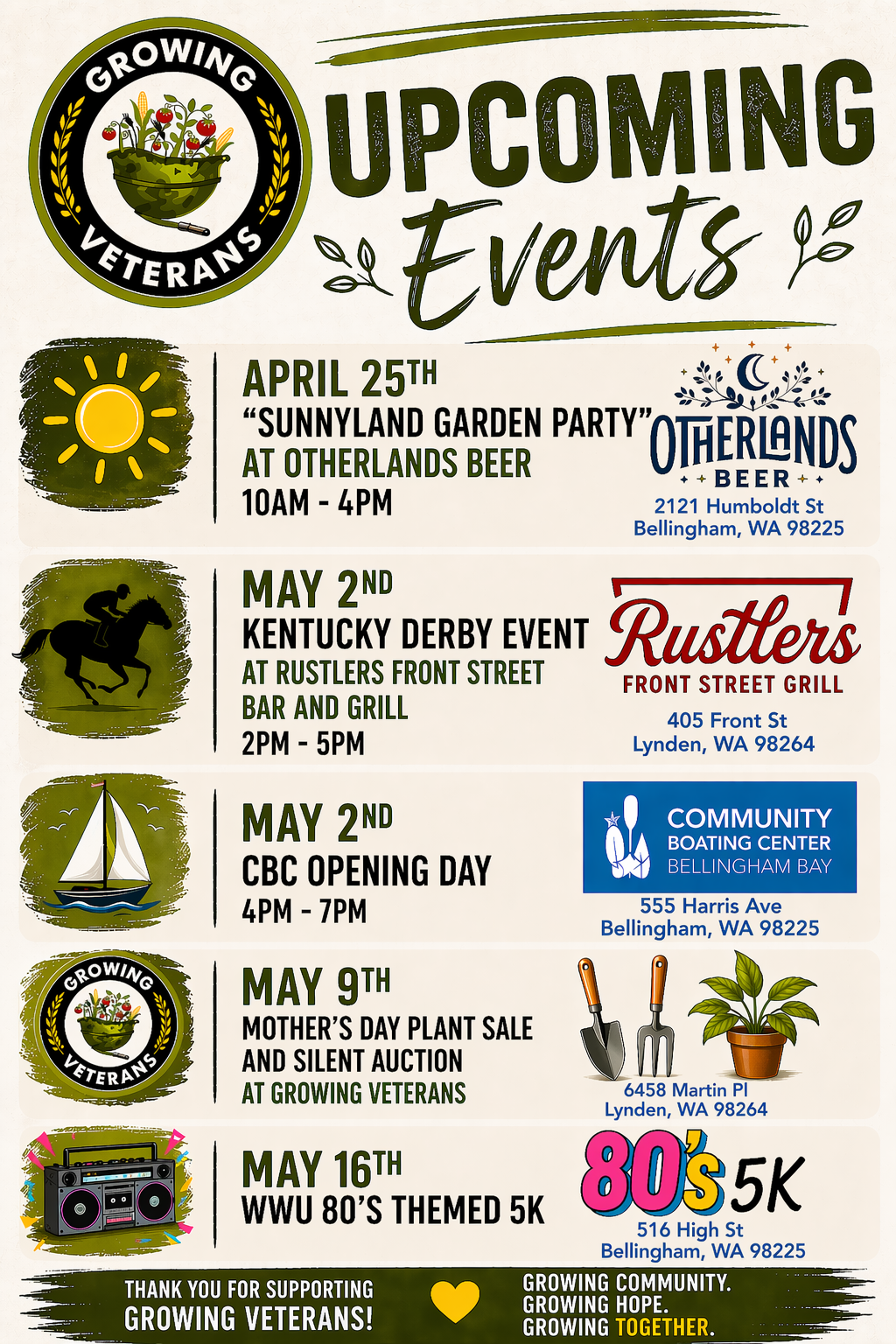 We grow community through joining Veterans with individuals, businesses, & other groups throughout our region. Breaking isolation means strengthening the bridge between veteran & civilian communities. Inquire using our contact page for info on scheduling an upcoming outreach event, corporate volunteer day, farm tour, or other brand collaboration with the vets.
